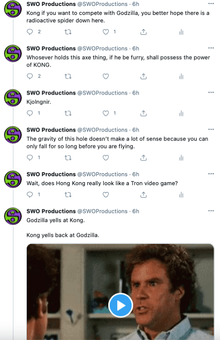 To be fair, the movie does pretend to have a plot (drink every time someone says “hollow earth”! You will not be conscious to see Kong and Godzilla fight a second time), but it’s threadbare at best. As I watched the movie, it was nebulous to me what anyone’s motivations even were. Stranger Things Girl was listening to podcasts with Deadpool’s Sidekick, and some other people wanted Kong to go to the center of the Earth for reasons. In my head, whoever wrote the screenplay for this movie just wrote “says some words” next to everywhere some dialogue should have been.