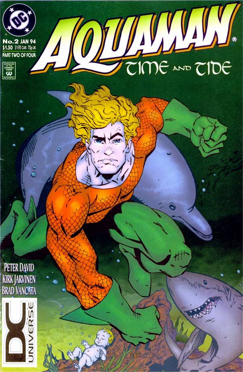 As a teaser mini to Peter David’s extended Aquaman run, the four issues do exactly what they set out to accomplish: they show who David’s Aquaman is, where he came from, and what the impetus for the arc should be. There is even a subtle tease of the hook-hand to come when the baby hero becomes known for using a shell to gouge out the eye of a shark. Good work there.