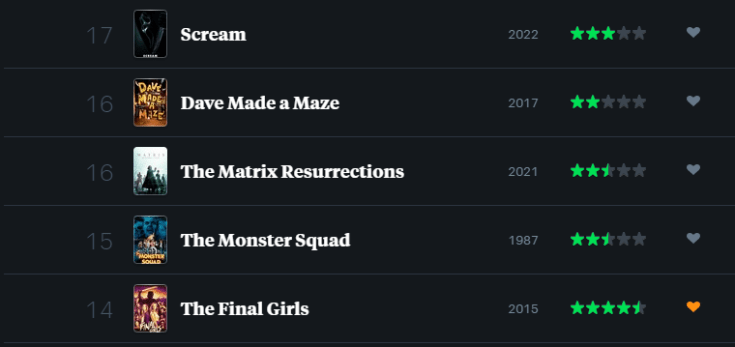 In what I can only explain as the BIGGEST HALF-A-STAR GAP EVER, Scream is a 3.0 while Matrix Resurrections is a 2.5? That doesn’t sound accurate at all. If I could do quarters, that would be 3.25 to 2.25. The new Scream is far and away the best of the series since the 1996 original recipe. I really quite liked it. Why did I give it only3 stars? Probably because of predictability. It’s only the second Scream (Scream 4 being the other) where I was confident in who the killers were early on.