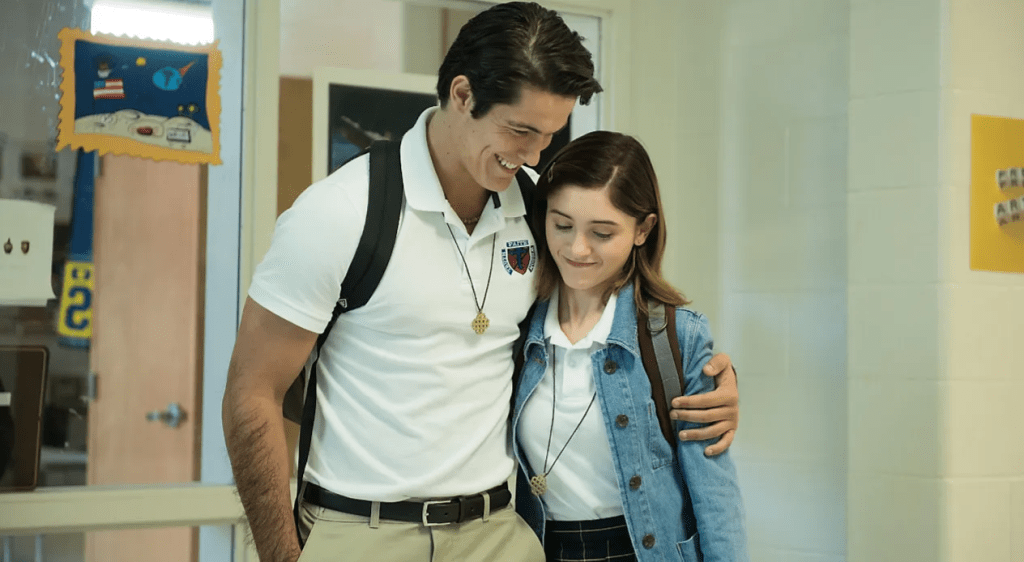 I think the biggest focus of Yes God Yes is the extreme hypocrisy throughout the church and religion in general. There are scenes where the priest on the retreat the students go on just finishes giving lectures on premarital sex, and then Natalya Dyer’s character Alice catches the priest watching pornography in his office and masterbating to it.