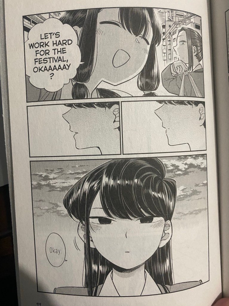 *I have been unhappy about this notion, but it’s CLEARLY where the series is going… so I guess I’ll get on board. Like it or not, Komi and Tadano have some romantic undertow to their friendship. They ARE pretty cute together. I guess. I hate you for making me get invested with this, book.