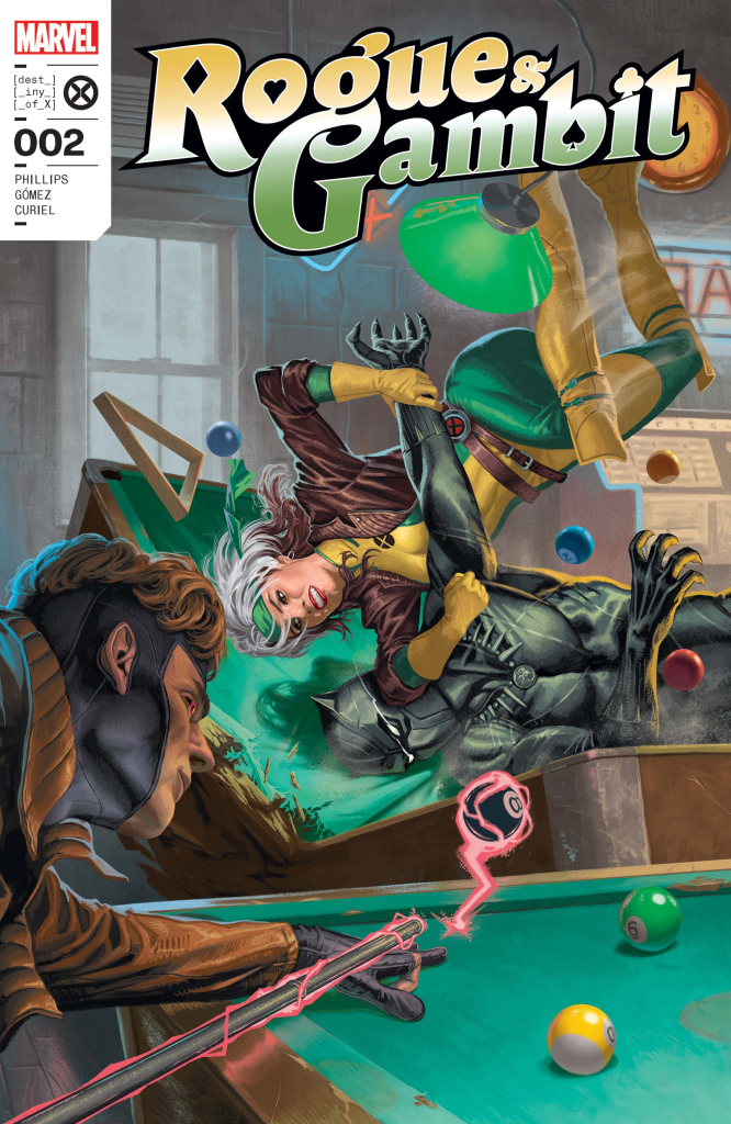 Anyway, this series is about Rogue and Gambit (obviously; it’s right there in the title) being tasked by Destiny (who is a smokeshow young woman now, and I thought she was always an old lady, so again… I am lost) to bring the teleporter mutant Manifold to her in order to save all of mutantkind. Despite being given nothing to go on, Rogue agrees to trust her adoptive mama.