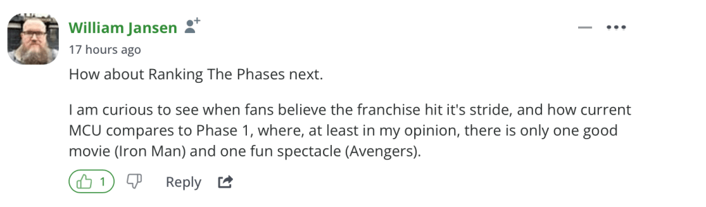 That’s it for now, but don’t worry; this series will be back when Phase Six is a wrap! Until then, let us know in the comments: what would your ranking of Phase Five be?